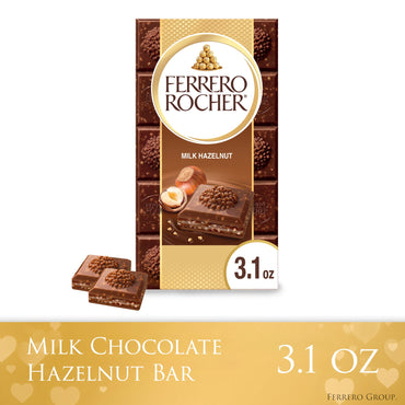 FERRERO ROCHER Milk Chocolate Tablet with Roasted Hazelnuts and Almonds, Luxurious Chocolate Bar, 3.1oz / 90g, Golden Wrapper