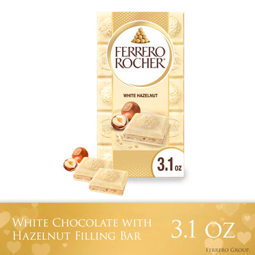 FERRERO ROCHER White Chocolate Tablet with Hazelnut Filling, Creamy and Crunchy Texture, 3.1oz / 90g, Shareable Snack Pack