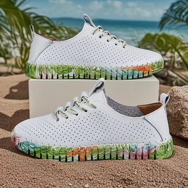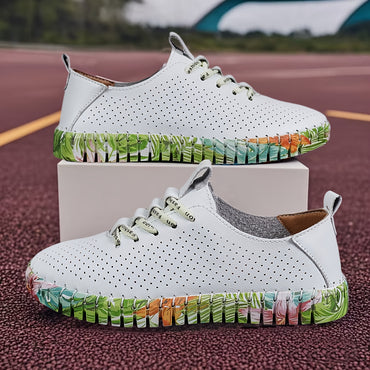 Women's Breathable Lace-up Colorful Sole Low-top Flat Casual Sneakers Trendy Sport Style Instagram-Inspired Streetwear Sneakers