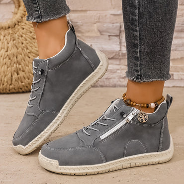 669-2 Women'S Mid-Top Sneakers - Round Toe Lace-Up Casual Shoes with Zipper Closure, Faux Fabric Upper & TPR Sole, All-Season Comfort, Stylish Streetwear Design, Perfect Gift for 11 Occasions, Versatile Footwear, Trendy Street Style, Durable Traction Foot