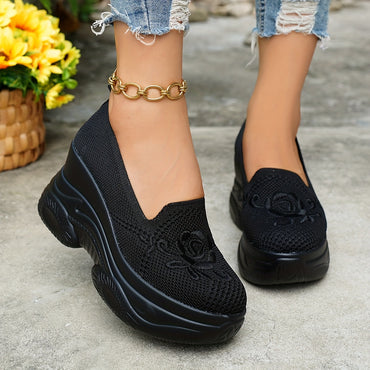 Women'S Slip-On Platform Sneakers - Beige/Pink/Black/, Breathable Synthetic Cover Shoes with Cushioned Insole - Casual & Formal Events - Easy Slip-On Design for Everyday & Special Occasions, Ladies Sneakers, Summer Footwear, Elegant Shoe Design, Durable R
