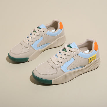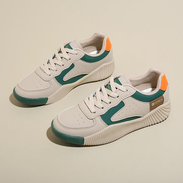 AOPLUS Women'S Lightweight Casual Sneakers - Low-Top Lace-Up Design, Breathable PU Upper & Fabric Lining, Cushioned Rubber Sole, White/Beige/Black Colorway for All-Season Comfort, Everyday Comfort Shoes, Modern Laceup Shoes, Durable Traction Footwear