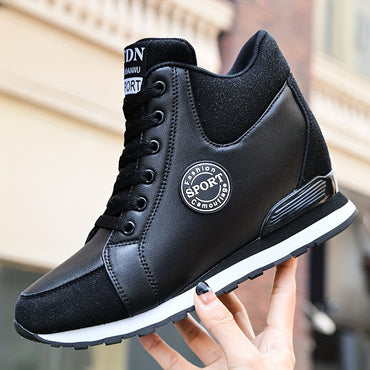 Women's High-Top Casual Sneakers - Lightweight Walking Shoes with Shock-Absorbing Anti-Slip EVA/TPR Sole, Breathable Synthetic Cover & Fabric Lining, All-Season Comfort for Daily Commute, Outdoor & Casual Wear - Black, Ladies Sneakers, Sleek Design, Comfo
