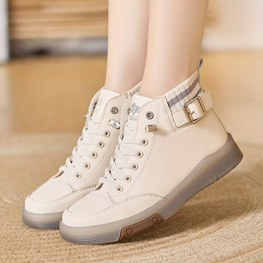 Women's Comfortable Breathable Thick-Sole High-Top Casual Sneakers - All-Season Versatile Lace-Up Shoes with Fabric Upper, Rubber Sole & Metallic Eyelets for Casual Attire, Ladies Sneakers, Versatile Fashion Footwear, Durable Traction Footwear