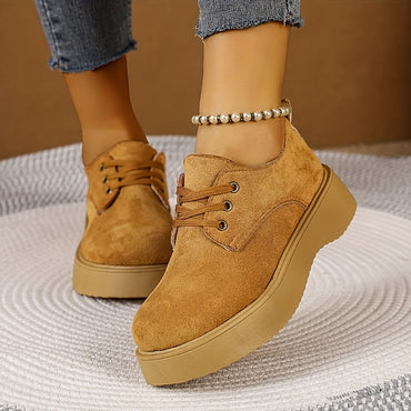 Women's Stylish Brown Platform Sneakers - Casual Lace-Up Low Tops with Round Toe, Comfortable Rubber Sole, and Faux Cover Upper for Casual Attire, Versatile Platform Shoes | Round Toe Sneakers | Durable Rubber Sole, Ladies Sneakers