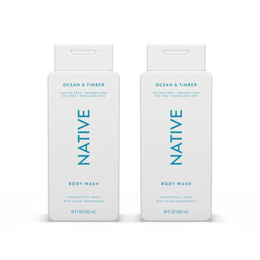 Native Body Wash Contains Naturally Derived Ingredients | For Women & Men, Sulfate, Paraben, & Dye Free Leaving Skin Soft and Hydrating | Ocean & Timber 18 oz - 2 Pk