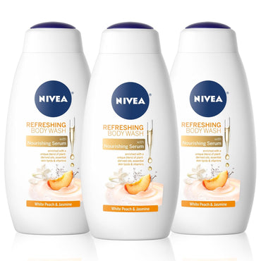 NIVEA Refreshing White Peach and Jasmine Body Wash with Nourishing Serum, Scented Body Wash for Women, Enriched with Provitamin B5 and Vitamin E, 20 Fl Oz Bottle