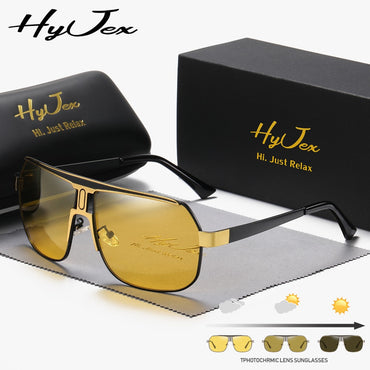 Hyjex Unisex Metal Polarized Oversized Frog Mirror Classic Driving Photochromic Glasses