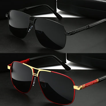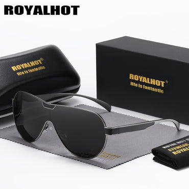 RoyalHot - Bold Punk Oversized Polarized Glasses with Durable Aluminum Frame and Flat Top Style - Perfect for Men and Women, Casual, Business, Outdoor, Sports, Party, Vacation, Travel, Driving, Fishing, and Photo Prop, Ideal Gift Idea