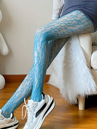 1pc Women Leopard Print 50D Skinny Leggings, Sexy Vintage Jacquard Pantyhose, Slimming Thin Tights For All Seasons