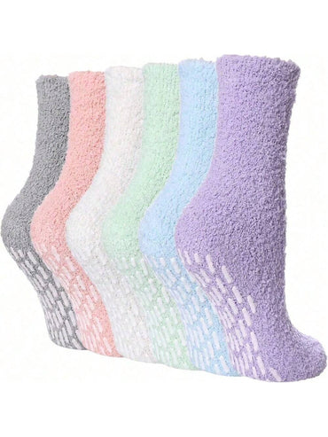 6 Pack Non Slip Socks For Women Winter Warm Cozy Fuzzy Slipper Socks Soft Fluffy Hospital Socks With Grips