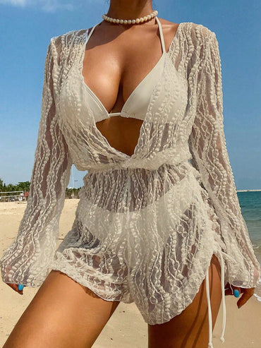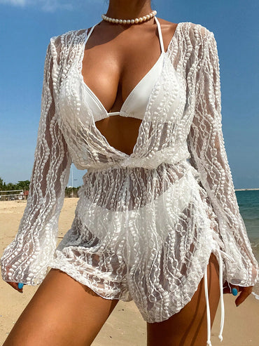 Bikini Solid Color Mesh Blouse Sheath Sexy Bikini Swimsuit Swimwear
