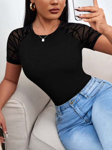 Raffinéa Round Neck Mesh Insert Drop Shoulder Short Sleeve T-Shirt