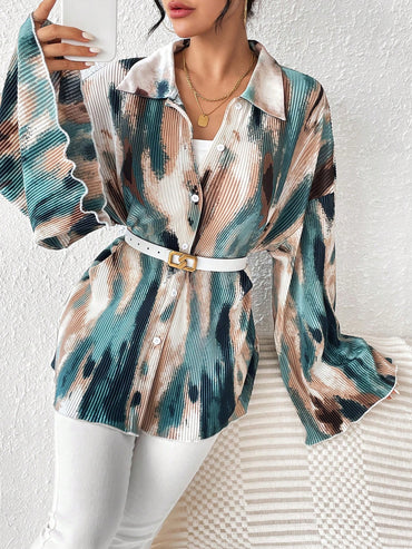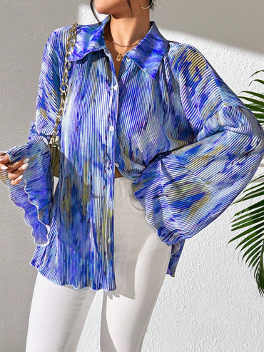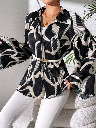 Raffinéa Women Spring/Summer Casual Holiday Commute Random Floral Print Flare Sleeve Shirt, Long Sleeve Blouse