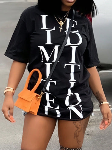 Sleeve Type: Drop Shoulder Style: Casual Hem Shaped: Regular Color: Black Pattern Type: Letter Neckline: Round Neck Sleeve...