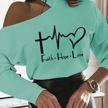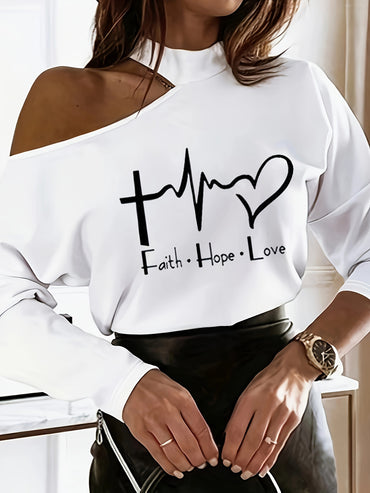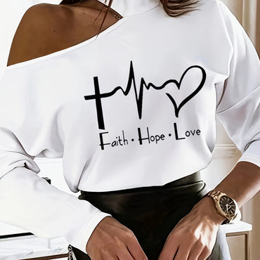 [Queen Pattern Top] Plus Size QUEEN Pattern Top - Casual Long Sleeve Crew Neck for Spring & Fall - Women's Clothing