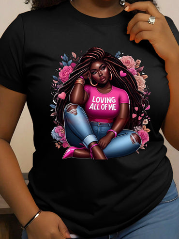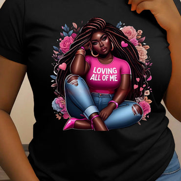 Figure Print Crew Neck T-shirt, Short Sleeve Casual Top For Summer & Spring, Women'S Clothing