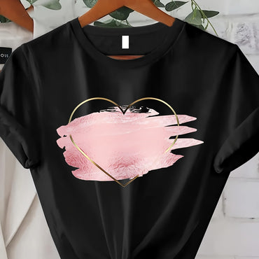 180g Hign QualityGeometric Heart Print T-Shirt- Spring/Summer Collection- Women'S Casual Top- Polyester Material- Regular Length- Knit Fabric- No Detail