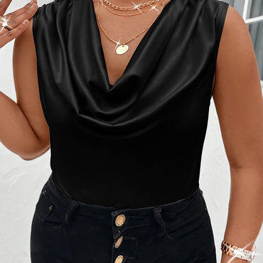 Plus Size Elegant Ruched Tank Top - Sleeveless Cowl Neck Design, Soft Solid Color, Summer Essential, Women's Comfortable Clothing for Curvy Figures