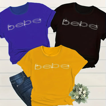 3pcs Plus Size Letter Print T-Shirts, Casual Short Sleeve Top for Spring & Summer, Women's Plus Size Clothing