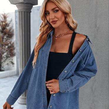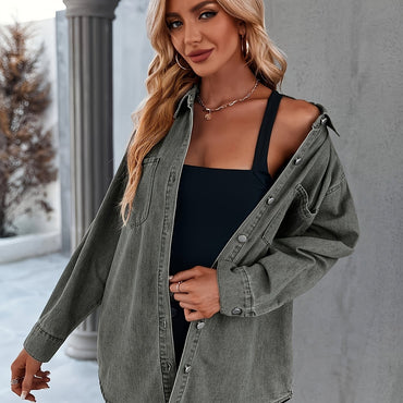 Women'S Spring, Summer, Autumn Casual Denim Shirt, Women'S Button Up Shirt, Oversized Denim Jacket, Long Sleeved Jacket