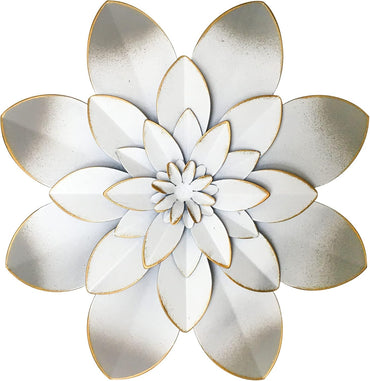 LAYERED METAL FLOWER WALL ART: This White and Golden metal wall sculpture features layers of molded metal to...
