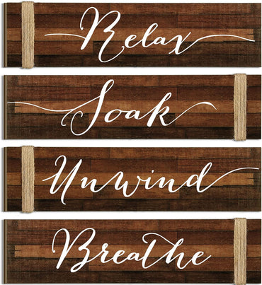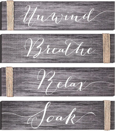 • 4 Pieces Farmhouse Bathroom Decor Wall Art Bathroom Sign Rustic Bathroom Decor Relax Soak Unwind Breathe Wood Sign for Home Spa Bathroom Decor, 11.8 x 3 Inch (White)