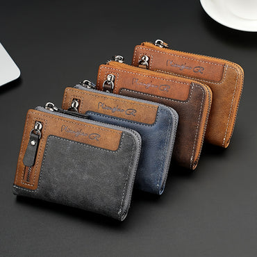 [Multifunctional Fashion Wallet] 1pc Men's Multifunctional Retro Fashion Short Wallet, Faux Leather Zipper Wallet, Multi-card Functional Wallet Zipper Coin Purse ID Bag, Ideal Gift for Men, Valentine's Day Gift, Holiday Gift