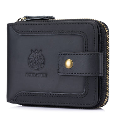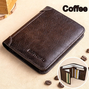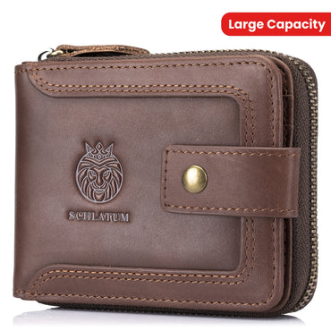 LUKZIJAES Genuine Leather Men's Wallets RFID Blocking Large Capacity Credit Card Vintage Wallet for Men with Coin Pocket Zipper ID Window
