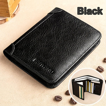 1pc Elegant Genuine Leather Men'S Wallet - RFID Blocking, Slim Multi-Card Holder, Durable First Layer Cowhide, Ideal Valentine'S Gift
