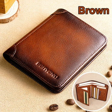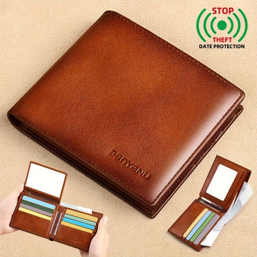1pc Men'S Vintage Leather Wallet, RFID Blocking, Multi-function Portable Trifold, Muti-card Slots With ID Windows And Banknote Slots, Perfect Father'S Day Gift And Holiday Gift For Father, Boyfriend, Husband, Friends