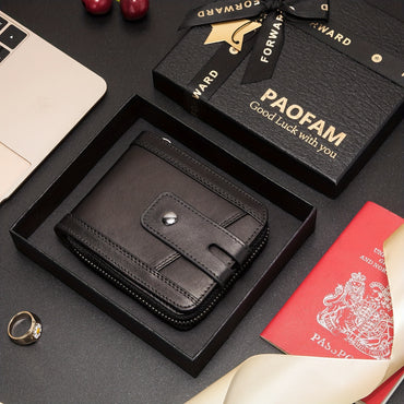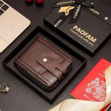 [1pc Men's Zipper Wallet] 1pc Zipper Wallet For Men, Top Layer Cowhide Zipper Around Purse, RFID Blocking Bifold ID Window With Gift Box, Zipper Wallet With Coin Pocket