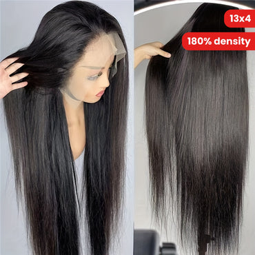 13x4 HD Transparent Lace Frontal Wigs Straight Lace Front Wigs Human Hair Pre Plucked Bleached Knots Brazilian Virgin Wigs Human Hair With Baby Hair 180% Density