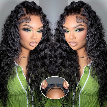 MS. MERRY Ready To Go Lace Front Wig Pre Cut Closure Wig Pre Plucked Natural Black Put On And Go Glueless Wigs Human Hair HD Water Wave 5x5 Lace Closure Wigs For Women 180% Density for Halloween Christmas Festivals