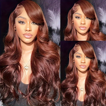 THGF 200% density 33# Red Brown Cosplay 13x6 Body Wave Lace Front Wig Human Hair Glueless Wigs 13*6 Glueless Wig Human Hair HD Lace Front Wig Daily & Party