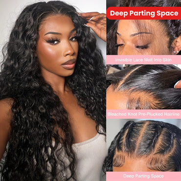 Estilar 13X4 Water Wave Wig Wigs Human Hair Pre Plucked Pre Cut Human Hair Wigs 200% Density For Women Human Hair HD Lace Frontal Deep Curly Wigs Glueless Wig For Beginners Local Warehouse Wholesale Price