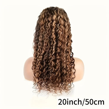 Glueless Water Wave Lace Front Wig, Human Hair, Ombre Brown Mix Highlighted Honey Blonde, 4/27, 5x5 HD Transparent Lace Closure, 180% Density Full & Thick Hair, Colored