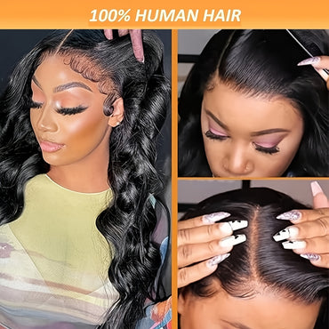 13x4 Body Wave Lace Front Wigs Human Hair Pre Plucked With Baby Hair 200% Density 13x4 HD Transparent Lace Front Wigs For Black Women Natural Black Wigs