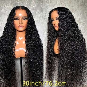 250% HD Wet And Wavy Lace Front Wig Human Hair Deep Curly Lace Front Wigs Pre Plucked #1B Water Wave Wig 13X6X1 T Part Wig Deep Wave Lace Frontal Wig Human Hair Wigs For Girls Transparent HD Lace Front Wig Natural Color