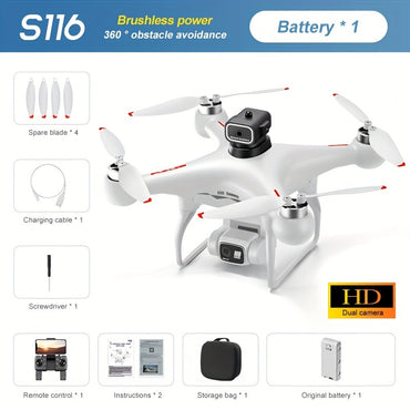 • Drone RC S116 à moteur sans balais longue endurance : Positionnement par flux optique, évitement d'obstacles, double caméras HD réglables, cadeau parfait pour les jouets