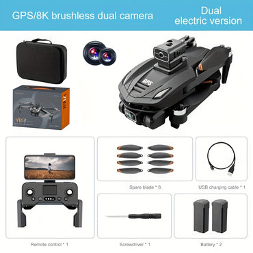 • Drone Pliable V168 Pro Max avec Télécommande 4.5", Caméra Frontale 8K, Caméras PTZ HD Doubles, Retour GPS, Contrôle par Gestes, Rotation à 360°, Moteurs Sans Balais, 2 Batteries – Quadricoptère RC Portable pour Photographie Aérienne & Plaisir en Plein Air