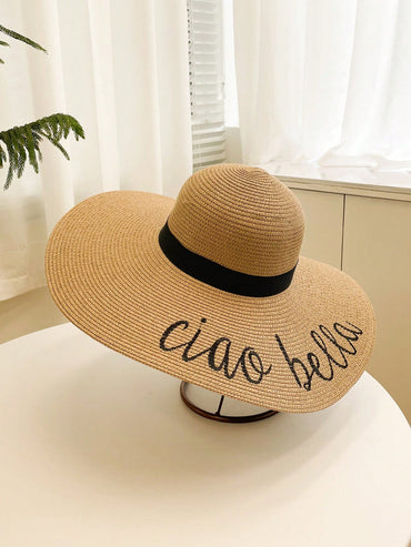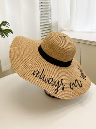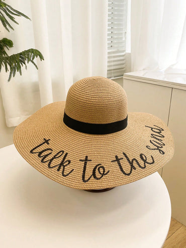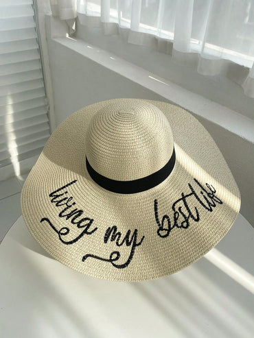 • 1pc Women Slogan Embroidered Boho Straw Hat For Daily Life Summer Beach