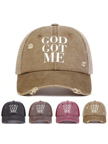 • 1pc Women's GOD GOT ME Letter Print Washed Baseball Cap, Outdoor Sun Protection Adjustable Casual Mesh Cap, Spring & Autumn Travel Beach Vacation