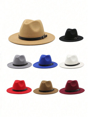• 1pc Women Solid Color Panama Hat, New Autumn/Winter Retro Leather Strap Decor Fedora Hat, Soft Felt Material Suitable For Outing, Party, Horse Riding, Walking