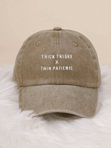 Unisex Embroidered 'THICK THIGHSxTHIN PATIENCE' Washed Baseball Cap, Outdoor Adjustable Leisure Hat