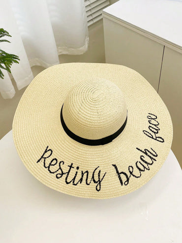 Alphabet Pattern Wide Brim Straw Hat Boho