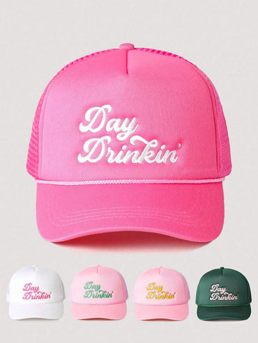 1pc Women's Outdoor Embroidered "Day Drinkin" Adjustable Drawstring Mesh Baseball Cap, Suitable For Valentines Day, Spring/Autumn Travel, Versatile Sun Protection Hat, Unisex Y2K Style Cap Valentines