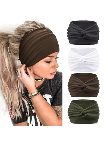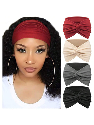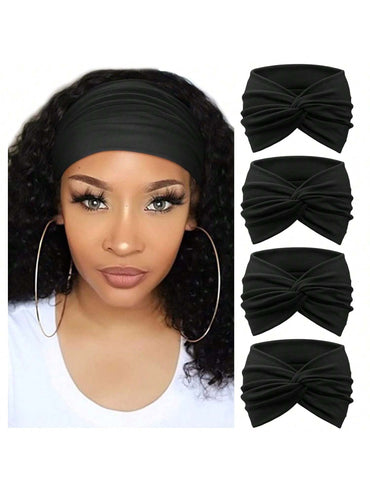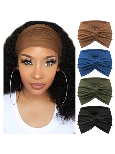 4pcs/Set New Solid Color Wide Headbands For Women, Cross Tie Hair Accessories For Sports, Yoga, Fashionable Girls' Turban Casual