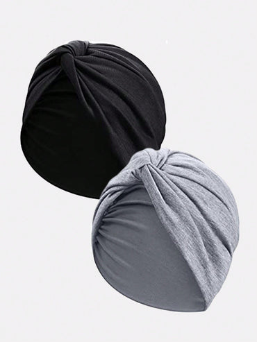 2pcs Women Silk-Like Lined Cancer Headwear, Solid Cross Twist Cap, Sleeping Cap, Scarf Hat For Daily Use