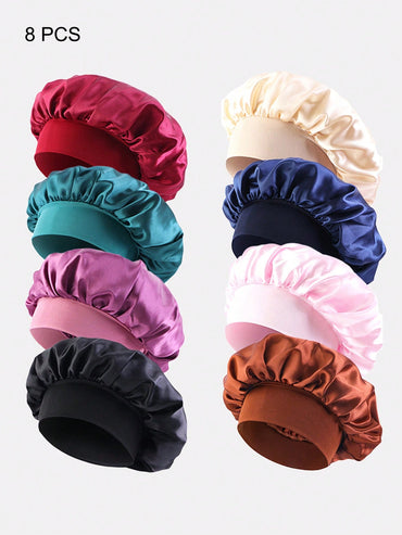 4pcs Women's Multicolor Elastic Wide Band Slouchy Beanie Cap Headband, Suitable For Daily Use Silk Bonnet Satin Bonnet